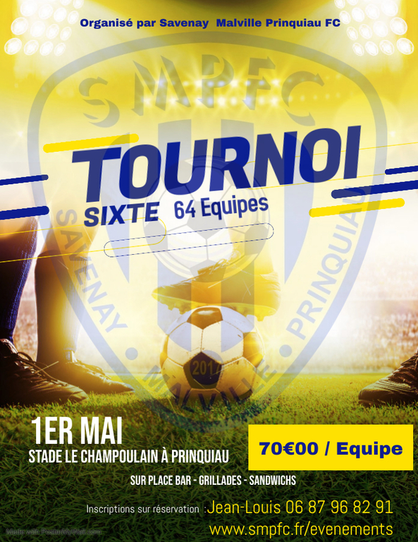 Pour info, le tournoi se déroulera le dimanche 1er mai, toute la journée au stade Champoulain de Prinquiau. Inscription 70 euros par équipe. Inscription et renseignements auprès de Jean Louis Chevrier au 06 87 96 82 91. Ou répondant au formulaire ci-dessous.