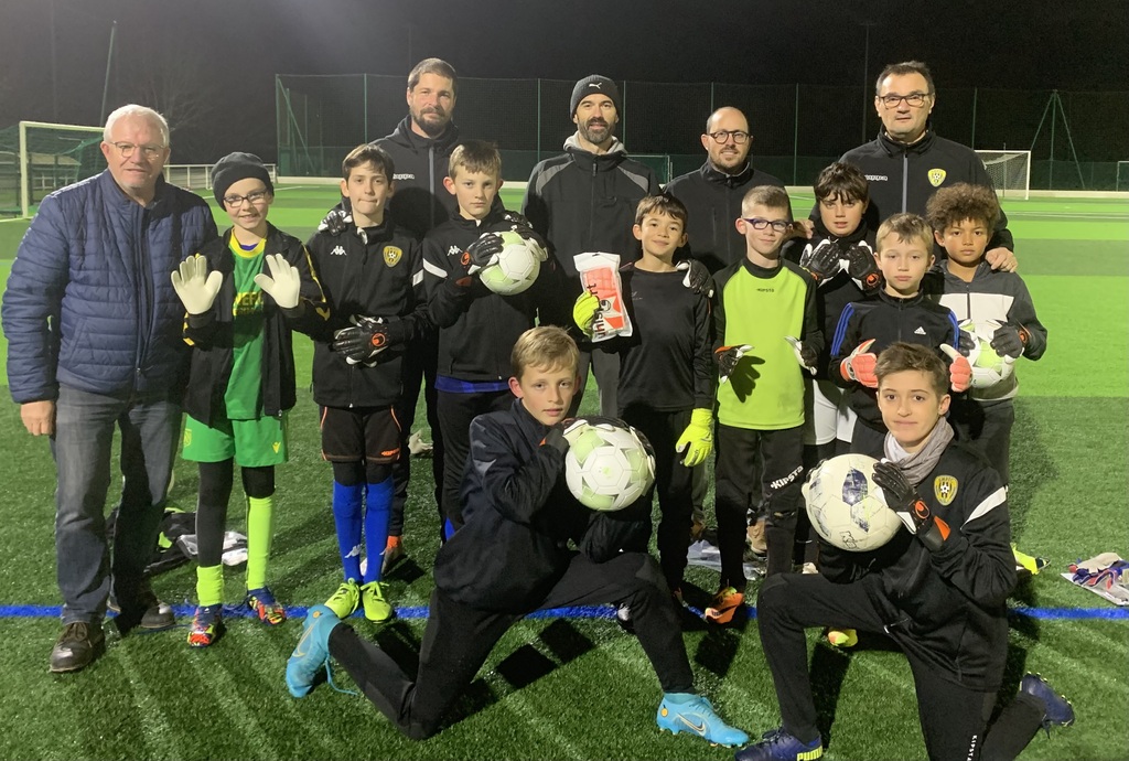 En effet, le Président jean yves Esnault était accompagné de Frédéric Bonnet et Germain Hocde de la commission Materiel du club afin de remettre une paire de gants à chaque gardien de but du Pôle Éducatif.