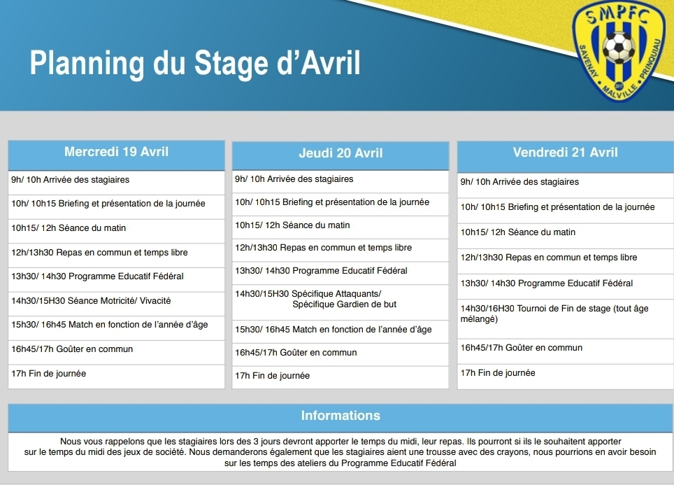 Une cinquantaine de stagiaires sont attendus pour les 3 prochains jours. Trouvez le programme concocté pour nos jeunes.